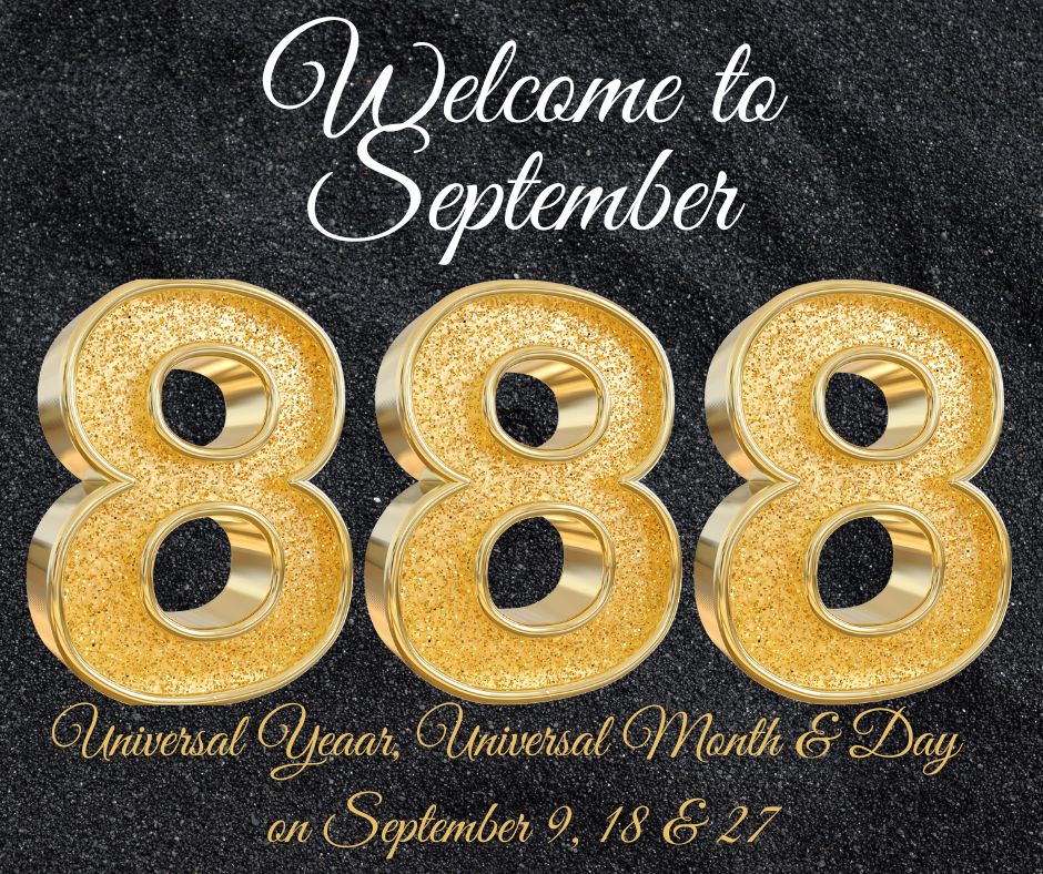 Each person has their own individual cycles based on there birth date. Universally the year begin on New Year’s Day. When 2024 began it became Universally Year 8. Globally September reveals the triple digit of 8 8 8, year 8, month and on September 9, 18 and 27 it is day 8.